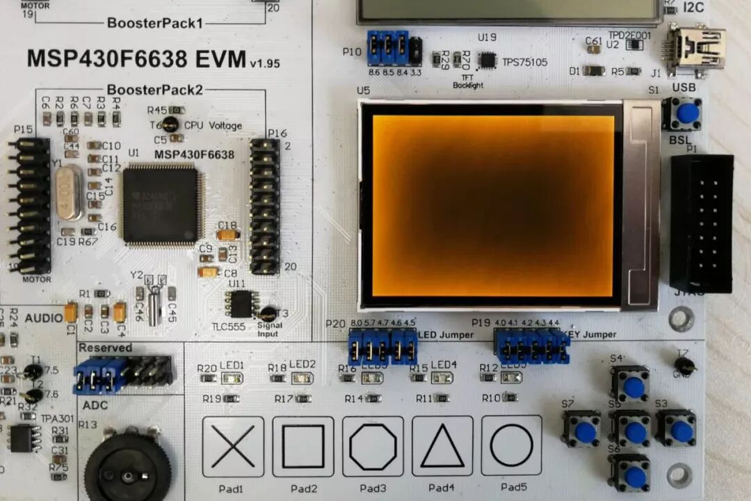 有少数用户向我们反应MSP430F6638实验系统主板上的TFT屏幕上电后发黄,黄色区域无法正常显示图像及字符,现象如下图所示: